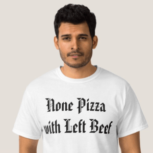 While we’re here, we need to chat about some of the fun None Pizza Left Beef collectibles and swag I’ve come across in my internet travels…