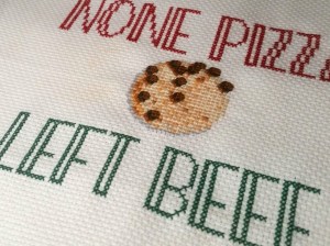 Gemma of EverGemma on Etsy made this cross-stitch pattern. When I tried to buy one she was kind enough to actually do the cross-stitching for me. I don’t know anything about cross-stitch, I’m going to assume it took her 9 years to complete it. Thanks Gemma for your decade of hard work!