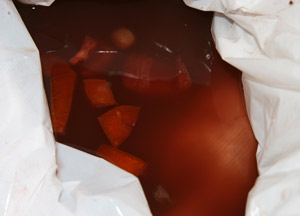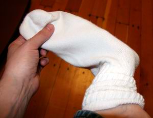 I gave serious thought to whether the straining sock should be clean or not. I came to the conclusion that it shouldn’t. In the spirit of Steve, Don’t Eat It, I need to take it to the extreme! Plus, I was already wearing dirty socks and my clean ones were in the bedroom, like 20 feet away.