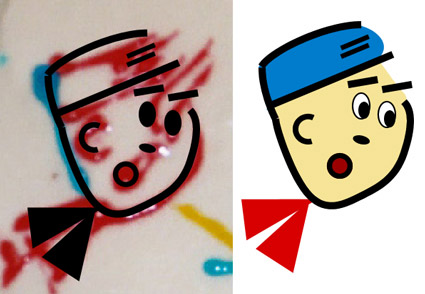 So, Dad. Now that you’re telling me the thing with a dot in it is an ear, someone named Lauren who reads the site tried to recreate what she thought the original art might have looked like, based on your cake drawings. (I send my dad a link to the following…)