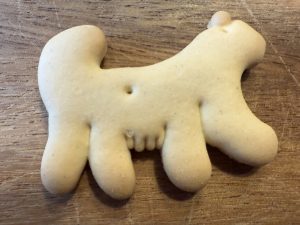 While we were going to town on the animal crackers (they really are excellent) I couldn’t help but notice some questionable teats on my (cat? squirrel?) cookie…